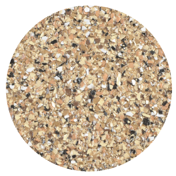 Our decorative colour flakes also known as chip or fleck are made of a vinyl composite and have been developed  to soak in and absorb resinous coatings such as Epoxies, Urethanes and Polyureas. Our flake blends are manufactured to the highest quality standards and provide 100% UV stability.